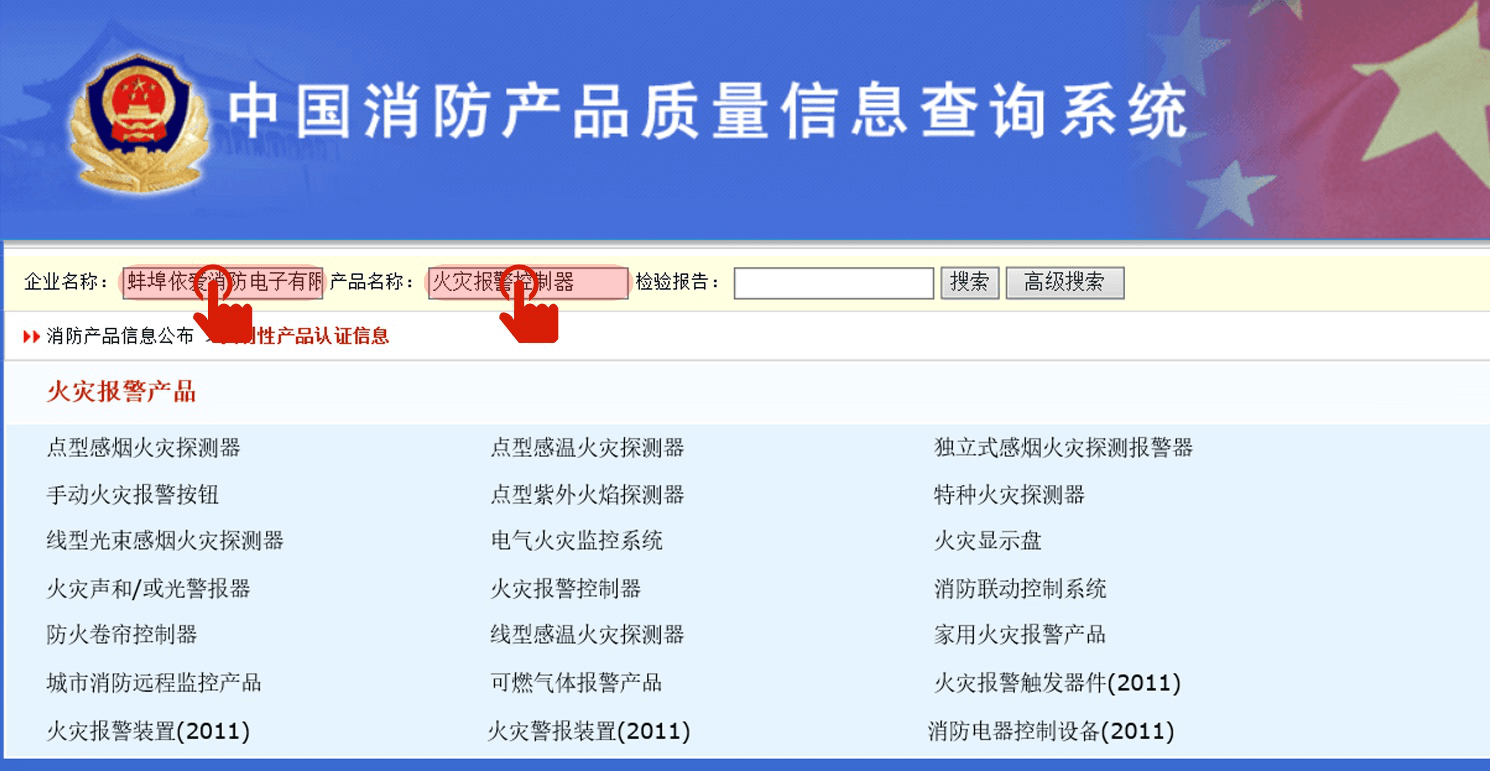 Klik pada produk yang relevan untuk memeriksa sertifikat 3C terbaru dan data laporan inspeksi, seperti klik "Home Fire Alarm Controller".